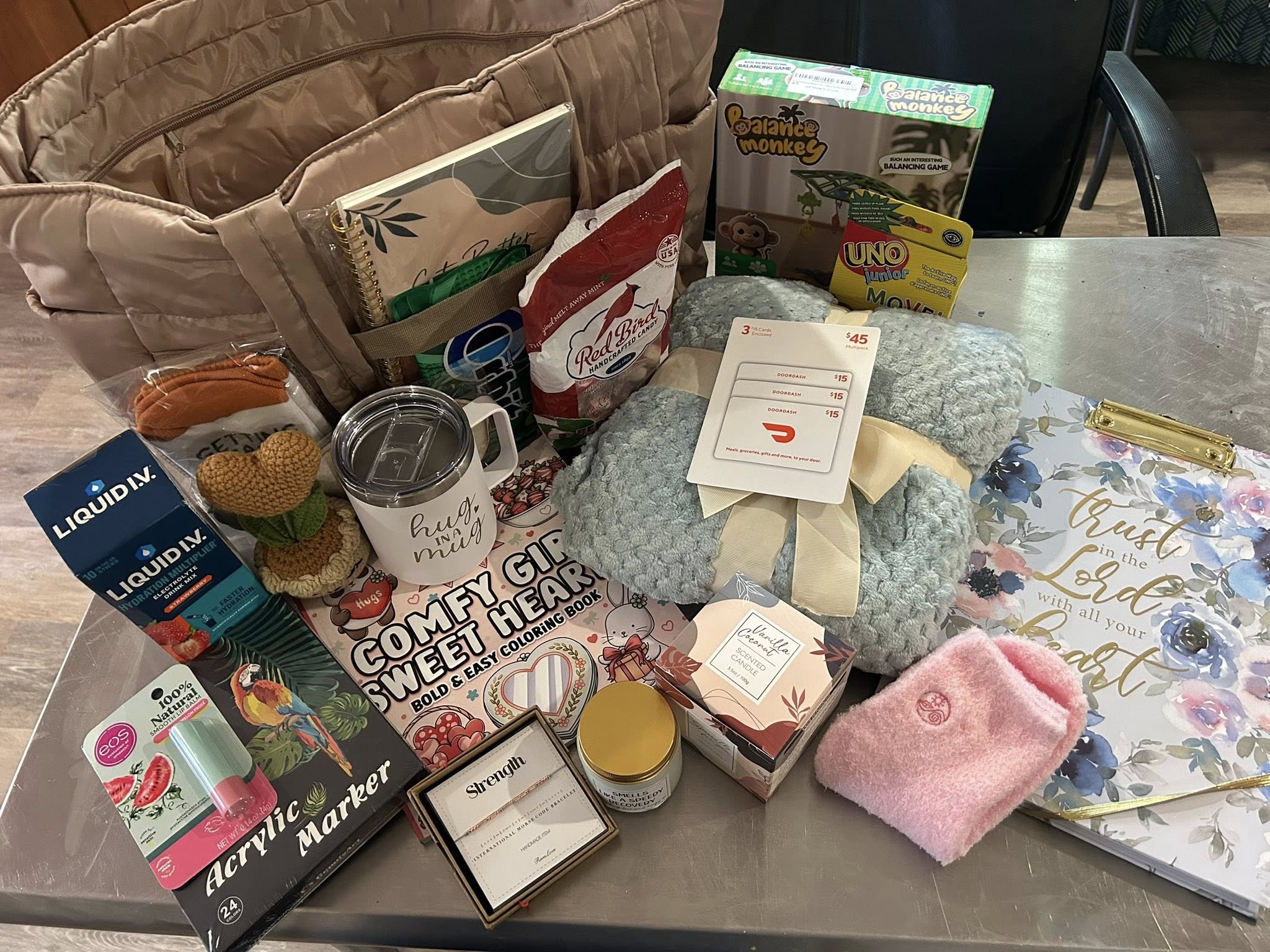 At the beginning of 2026 One of Drew's favorite nurses (she is now a cardiology nurse practitioner) recently found out she has breast cancer. It is hard to explain what it is like to hear one of your beloved healthcare heroes is facing a difficult time. Drew's medical team became our family in the over 100 days we spent with them. They were there for us during the worst days of our lives and rejoiced with us when Drew received his beautiful gift of life. Just thinking about how they supported us, rallied around us, uplifted us and cared for Drew with such love, grace and compassion makes me tear up. It is indescribable and we will forever be grateful for every one of them.From the moment Drew heard this news he knew we had to send a care package to her. It is because of your generous donations that we were able to quickly put together a "Gifts from the Heart" tote filled with things to brighten the day of someone we hold very dear to our hearts. We are thankful for our breast cancer warrior good friend who gave us recommendations on what this amazing nurse might need for the long journey ahead. A big Thank you to both of Drew's grandmas who both always jump in to help us. If you could please pray for Drew's Nurse we would really appreciate it